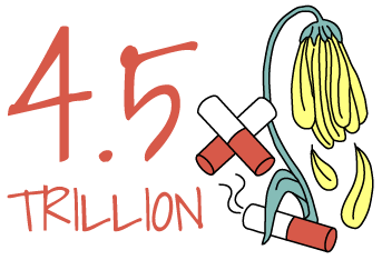 Every Year, 4,5 Trillion cigarette butts are littlered. The fibers of just one cigarette but with the toxics in the negotine can toxicate 30 litres of water.